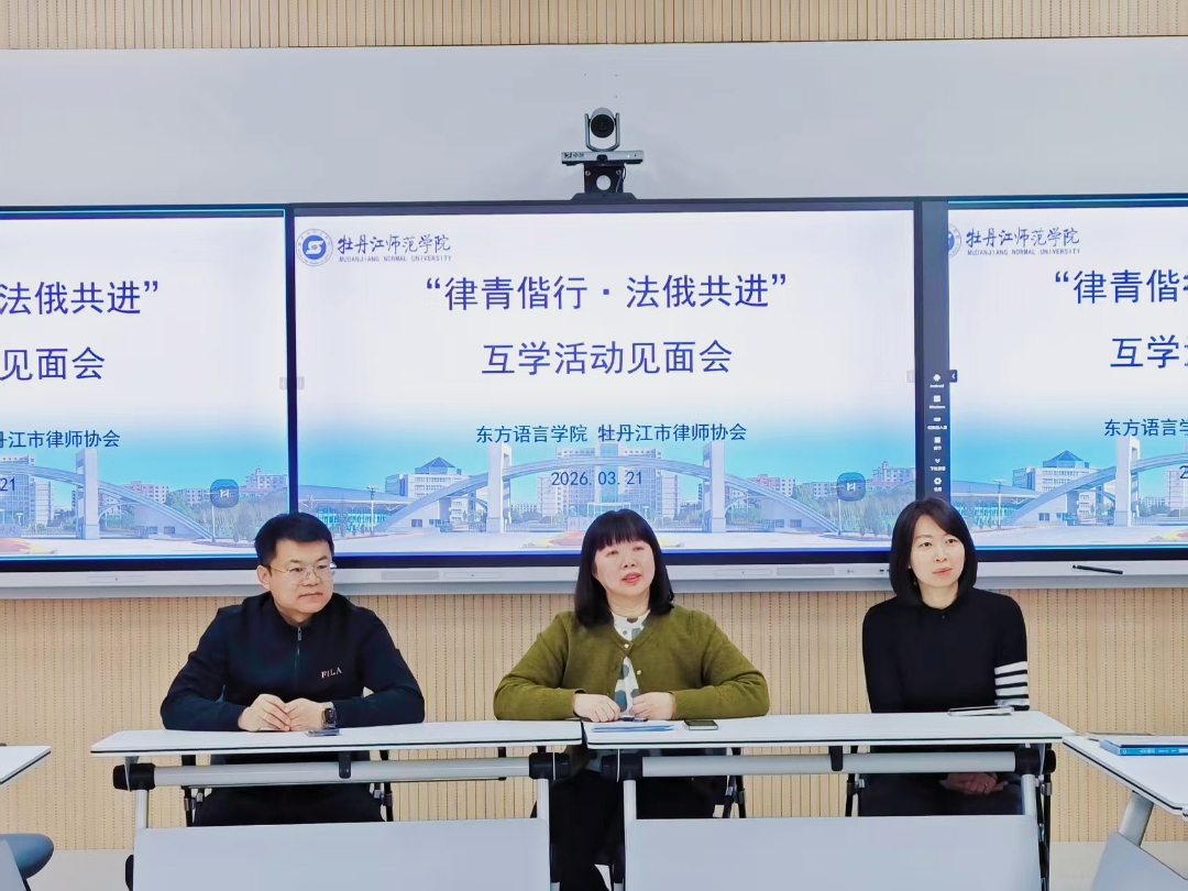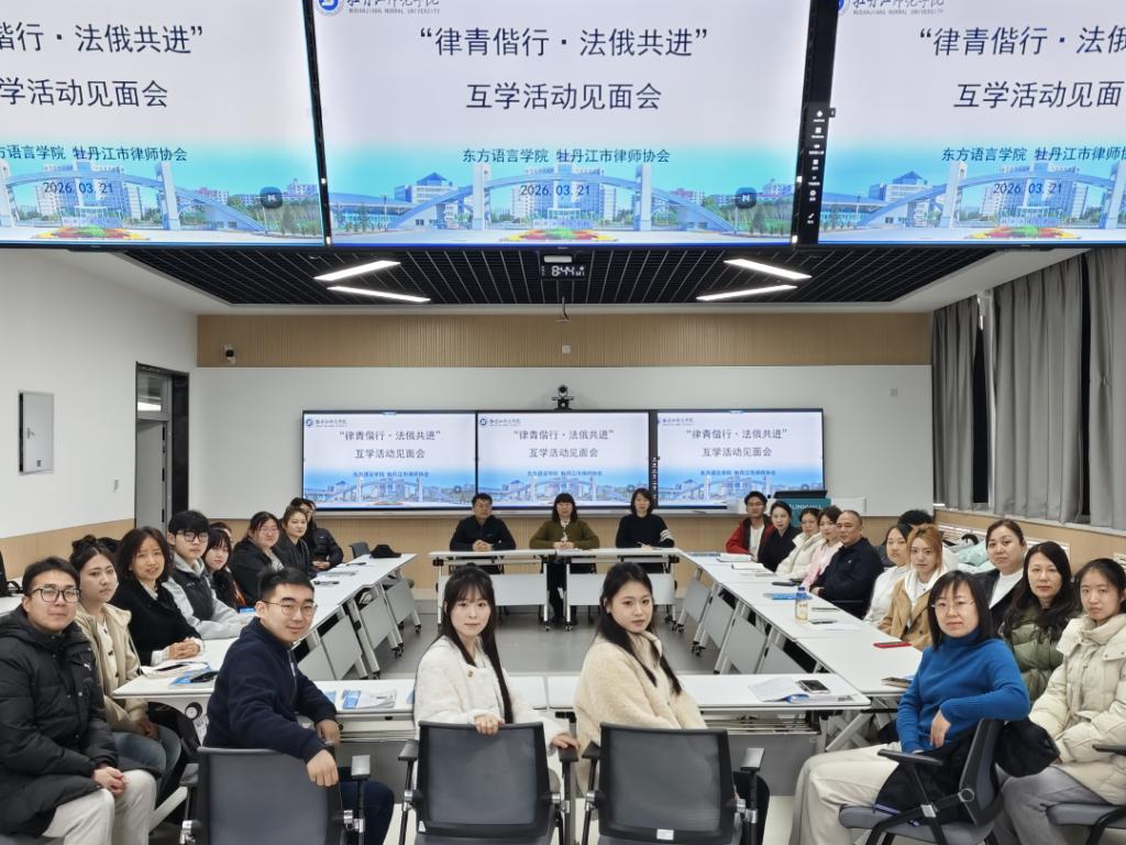 为适应国家和区域发展对涉外法律服务的需求,深入推进新文科建设,培养“俄语+法律”复合型专业人才,2026年3月21日,东方语言学院在实训楼407室举办“律青偕行·法俄共进”互学活动见面会。教学副院长刘凯东、俄语系主任王兴华、教科研办公室副主任关茗竺、涉外律师俄语研修班全体学员以及俄语专业法律俄语创新实验班的学生出席活动。活动由王兴华主任主持。