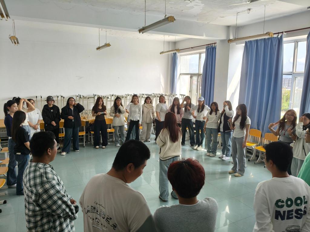 此次活动精心设计了各个环节,“开呀开呀开火车”游戏让同学们在欢声笑语中打破隔阂,减轻对陌生环境的紧张感;“击鼓传花”环节通过即兴自我介绍和才艺展示,帮助克服社交恐惧;“团队协作画队徽”活动让同学们在共同创作中学会沟通配合,建立团队信任;“松鼠和大树”游戏让新生进一步加深了对彼此的了解,增进了友谊。最后的“交流分享”环节,新生在轻松氛围中敞开心扉,分享入学以来的心理感受与成长收获,心理老师传授了实用的心理调适技巧,帮助大家缓解焦虑。