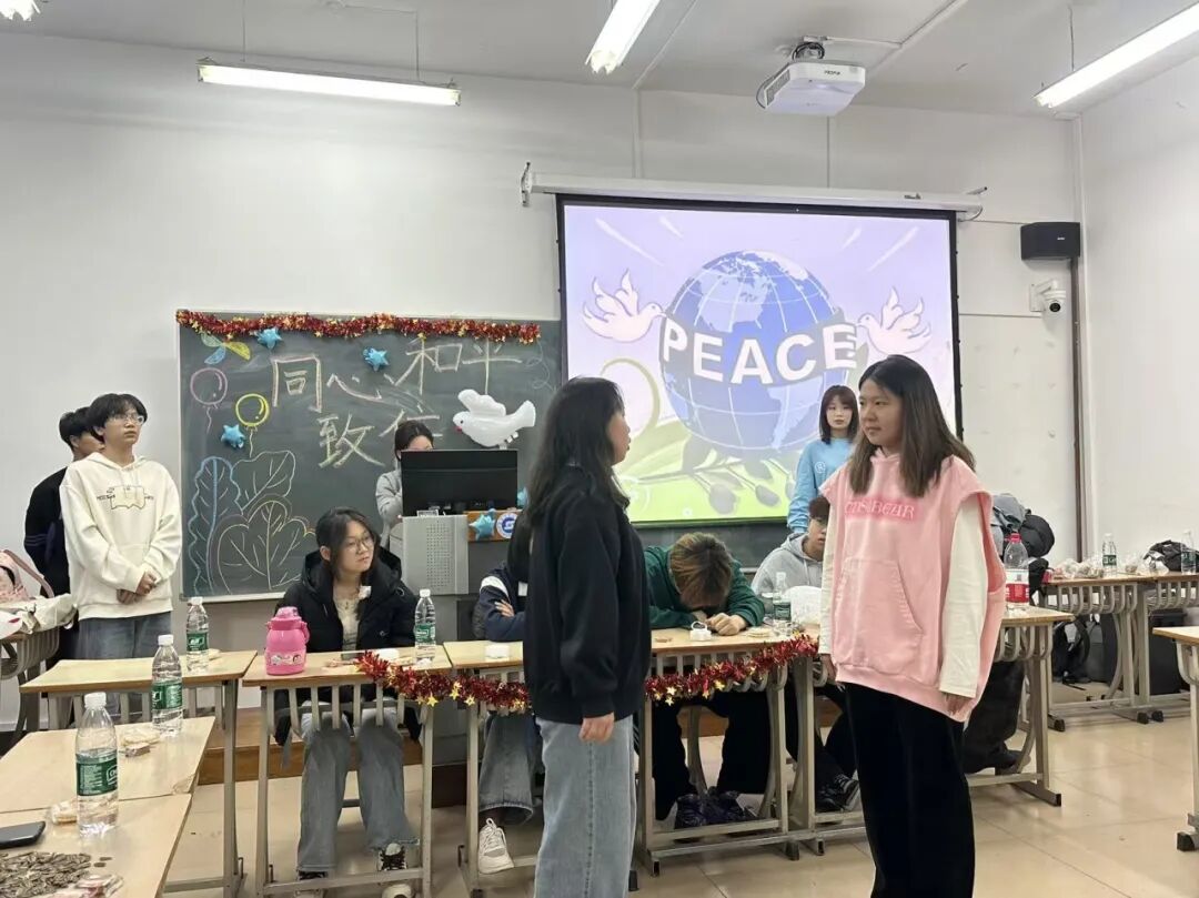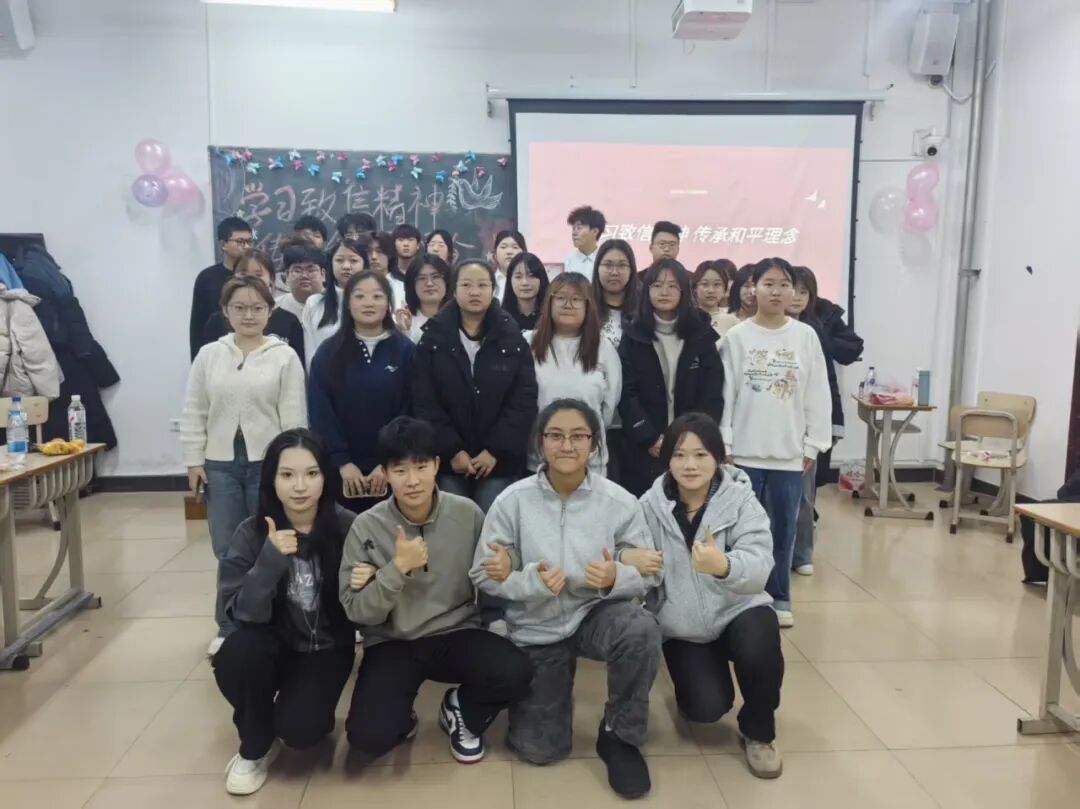 为深入学习贯彻习近平总书记向世界青年和平大会致信精神,引导同学们厚植热爱和平、维护和平的责任意识,东方语言学院团总支于2025年11月12日,组织2025级各团支部开展“学习致信精神,传承和平理念”主题团日活动评比。辅导员郝欣欣老师及第十九届团总支学生会代表出席活动并担任评委。