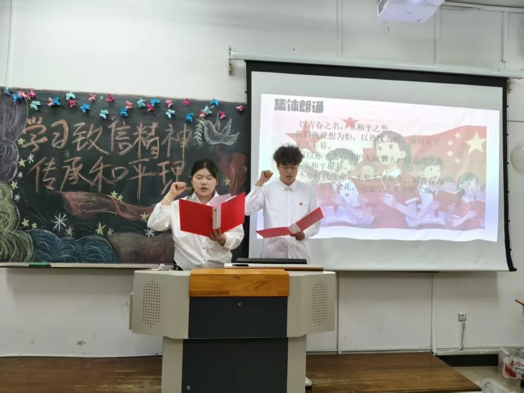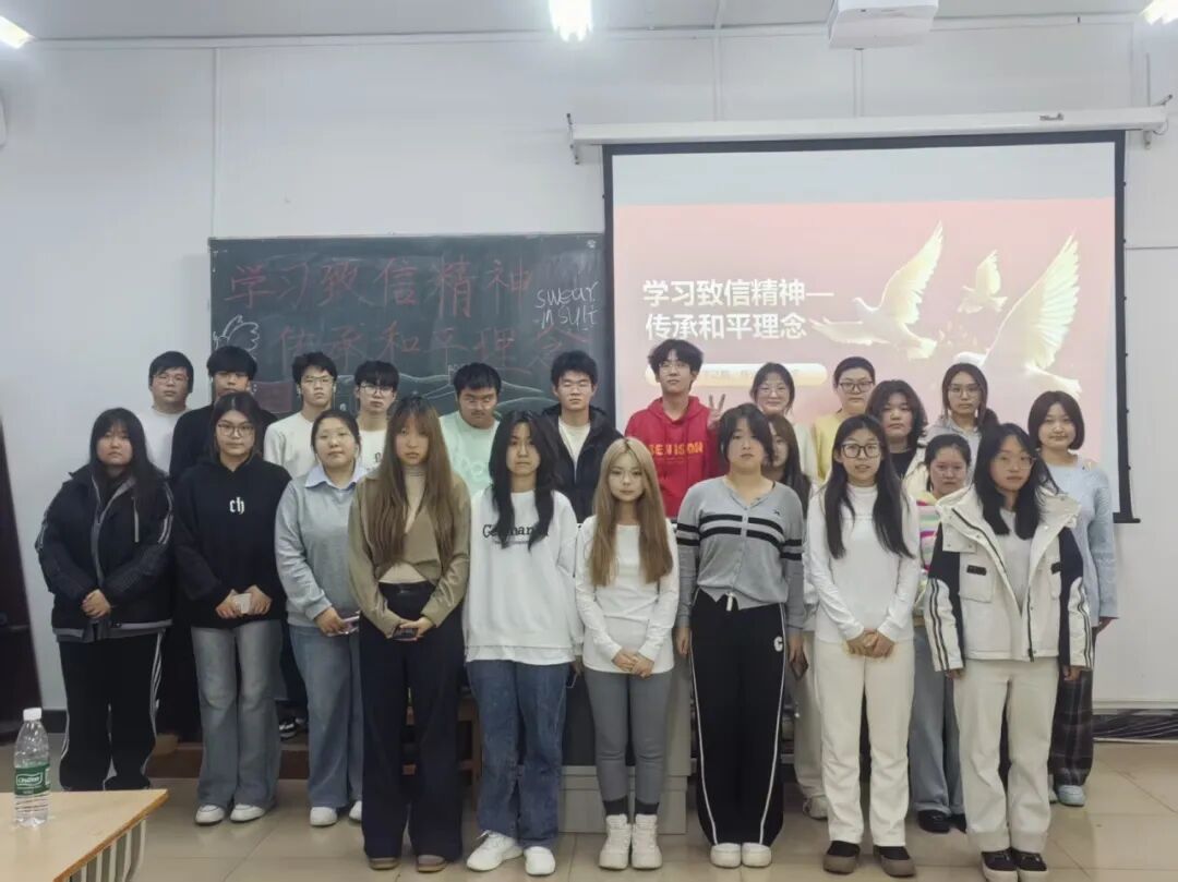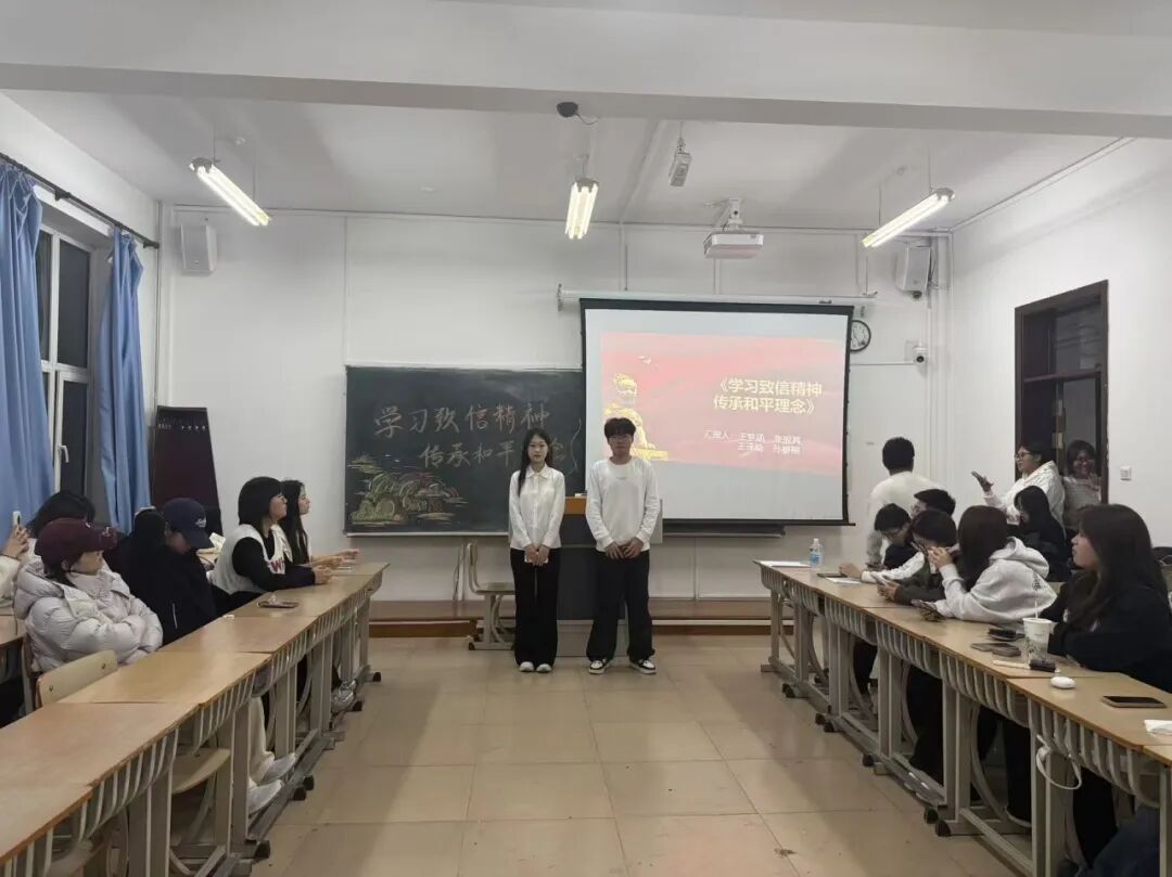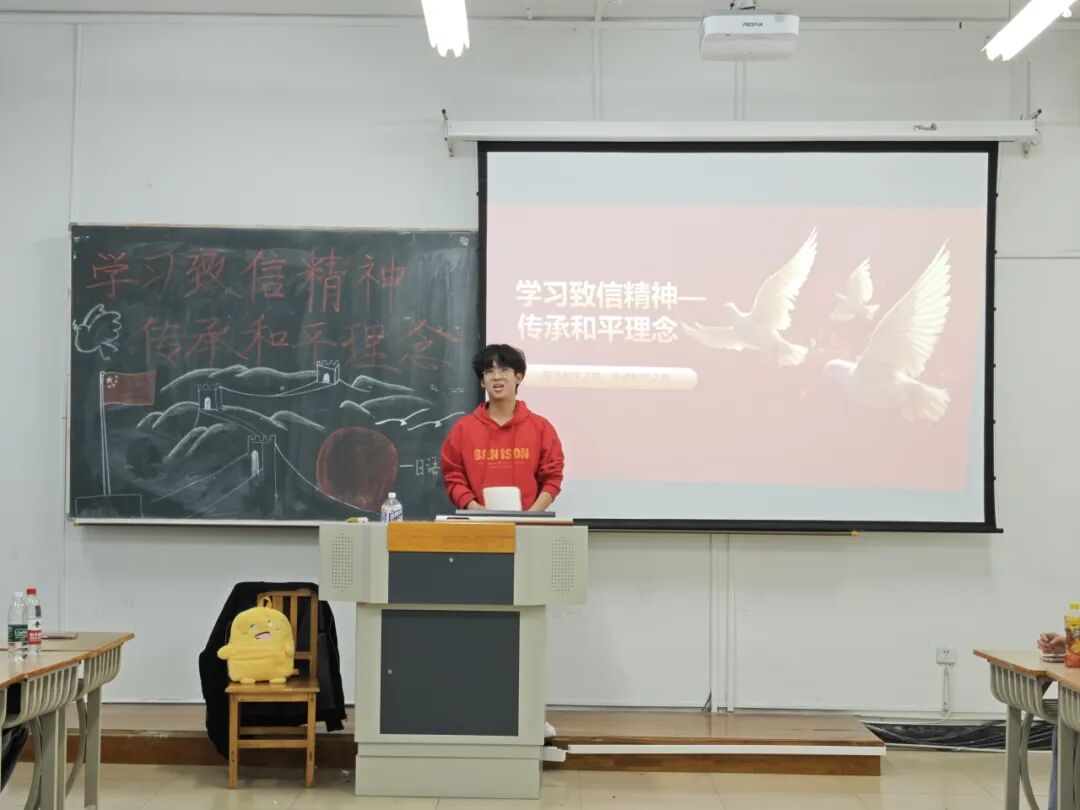 评比活动自启动以来,得到各团支部的积极响应。活动中,各支部围绕“致信精神内涵解读”“和平理念的时代价值”等核心内容,通过主题宣讲、情景剧演绎、诗歌朗诵、歌唱表演等丰富多样的形式,将致信精神与专业学习、社会实践深度融合,呈现出一场场思想深刻、形式新颖的团日活动成果。同学们在沉浸式体验中,深刻体会到和平的珍贵与捍卫和平的责任。