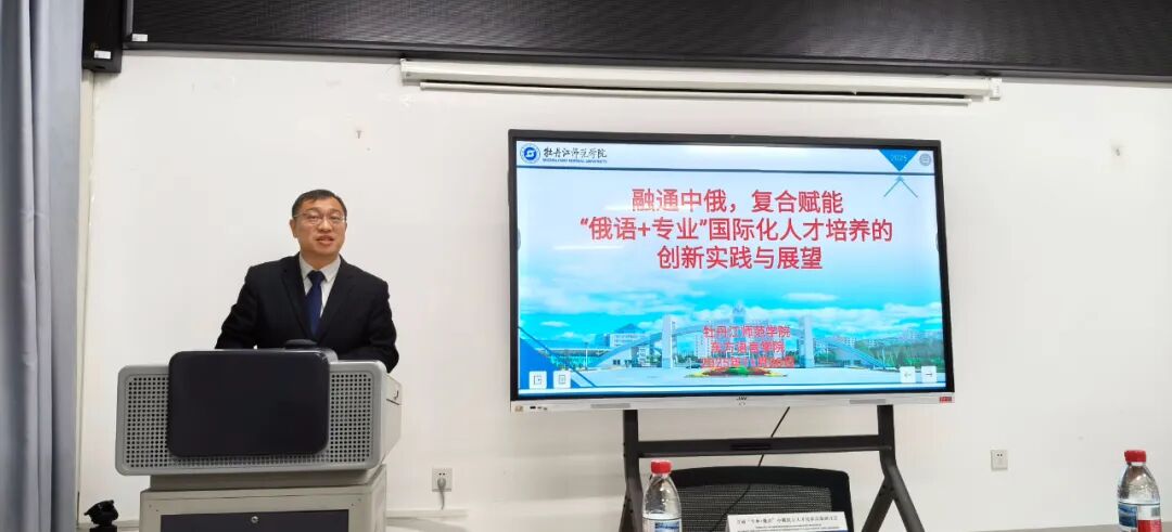 研讨会上,来自中俄高校的22名专家学者紧密围绕“专业+俄语”中俄联合人才培养主题做大会主旨报告,深入总结经验,切实谋划未来。在分组讨论环节,院长房国铮向与会专家做了题为《融通中俄、复合赋能“俄语+专业”国际化人才培养的创新实践与展望》的报告,他强调牡丹江师范学院俄语专业自1992年创建以来,历经筑基期、发展期、提升期的持续发展,已经构建起“语言夯实根基,专业拓宽领域”的“三型一化”外语人才培养体系,教科研成果丰硕。房院长强调,自2021年起,我院创新推行“俄语+”新文科背景下的复合型外语人才培养模式,开设法律俄语方向,组建法律俄语创新实验班,通过校政、校企、院院合作,培养通俄语、懂经贸及法律的外语人才。同时推进办学国际化,与20余所俄罗斯高校开展本科“2+1+1”、翻译硕士“1+1”中俄联合办学,搭建中俄文化交流、企业实习等多元化实践平台,毕业生发展态势良好。未来,俄语专业将持续优化培养方案,深化中俄教育合作,提升人才培养质量。