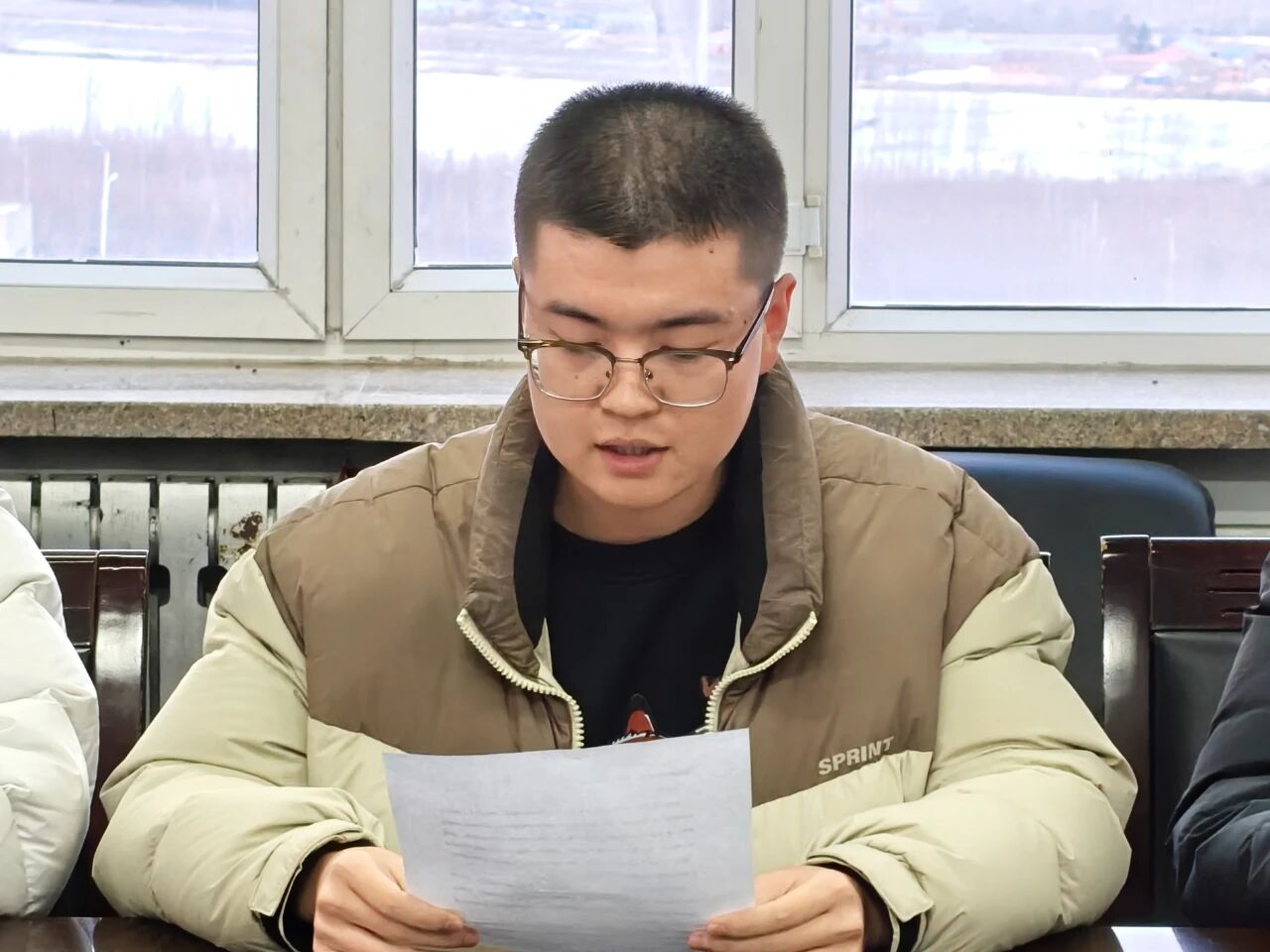 “从晨光熹微到星光满天,从单词书本到真题试卷,每一份坚持都值得被铭记,每一次拼搏都终将有回响。”学生代表陈晓龙在发言中分享了备考路上的酸甜感悟,他表示,学院的关怀如冬日暖阳,让大家感受到来自学院的温暖,未来将带着这份期许,全力以赴冲刺终点,不负韶华、不负嘱托。