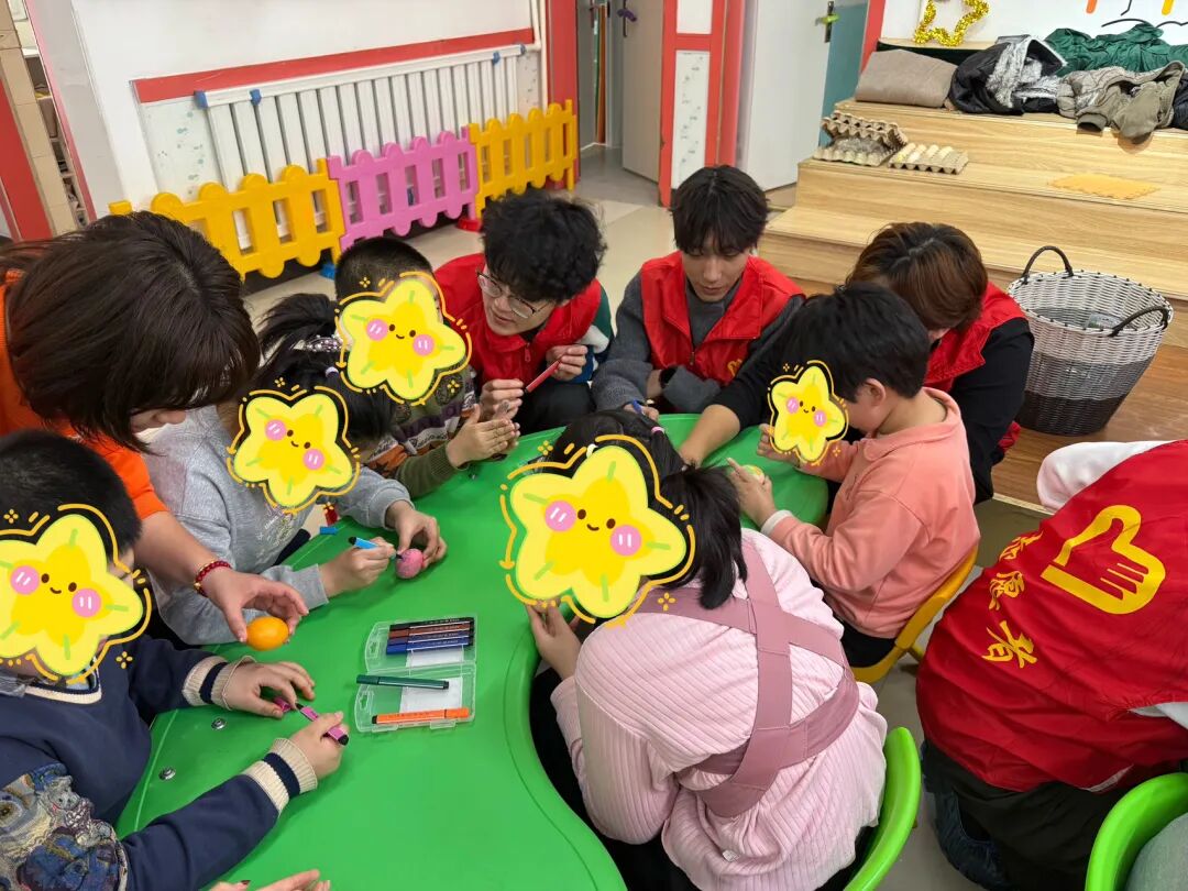 本次活动恰逢春分节气,志愿者们围绕节气特色,精心设计讲绘本、立春蛋、涂鸡蛋、填色卡等几项互动活动,带领孩子们感知春分时节的自然生机,用色彩打开孩子们的内心世界,让孩子们在创作中收获成就感。全程没有刻意的引导,只有细腻的陪伴,孩子们在不知不觉中露出纯真笑容,现场氛围温馨又治愈。